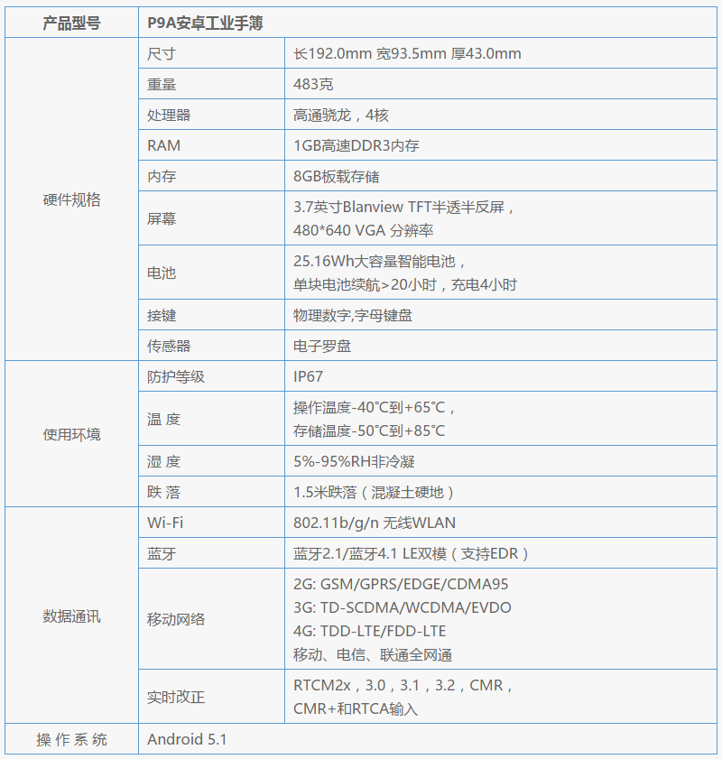 采用大容量智能電池,單塊電池可以保證P9A的作業(yè)時(shí)間超過20小時(shí),而充滿單塊電池電量的時(shí)間只需4小時(shí)。
