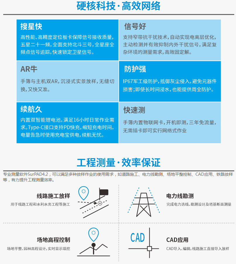S1 AR視覺放樣RTK,搭載高性能、高精度定位板卡,全星座全頻點信號追蹤(五星二十一頻),全面支持北斗三號;實景放樣,一步到位;預裝思拓力第四代慣導傾斜測量技術,顯著提升工程放樣效率。